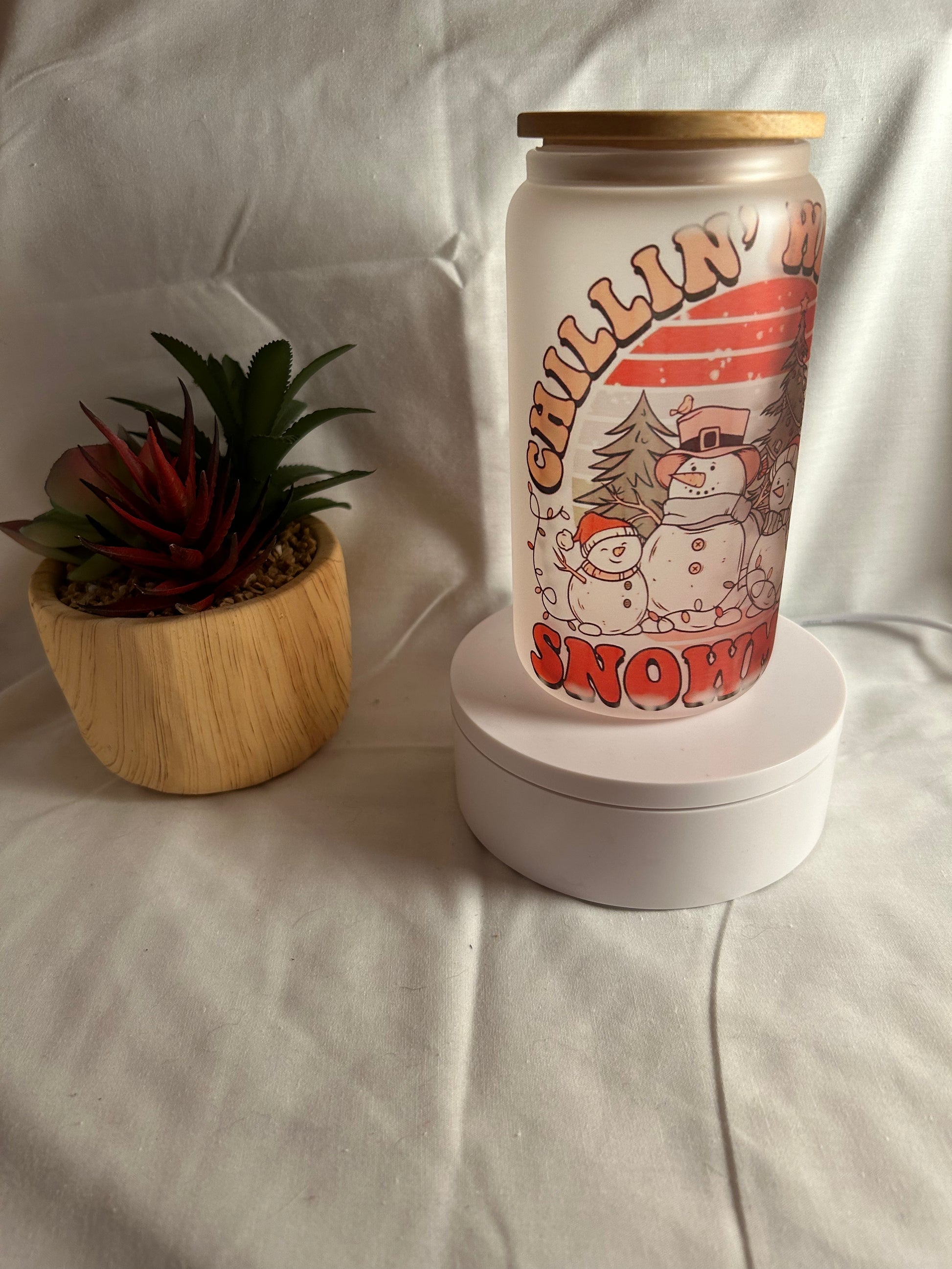 Chillin with my Snowmies Frosted Glass Cup- perfect to enjoy your cup of coffee! ☕️