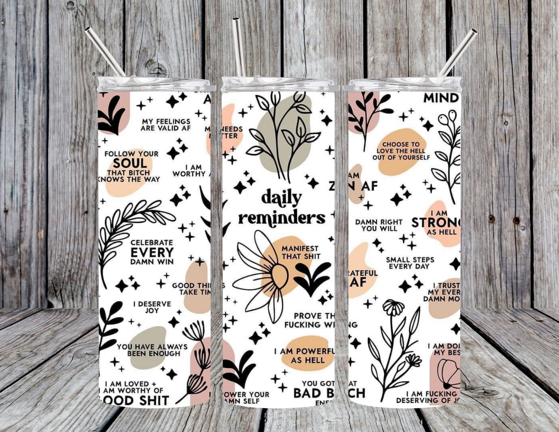 Here is the perfect tumbler to help get through the day with some daily reminders!