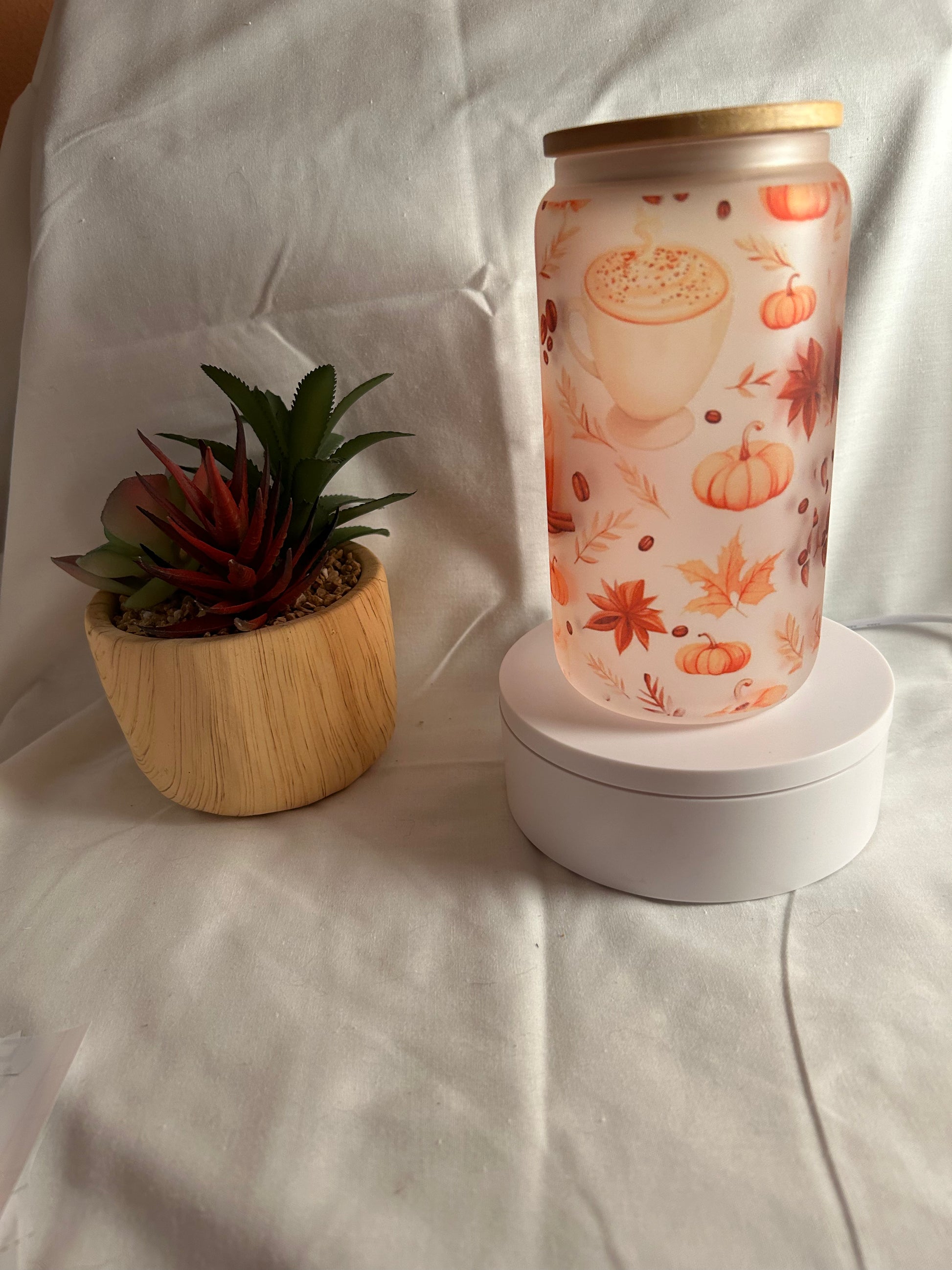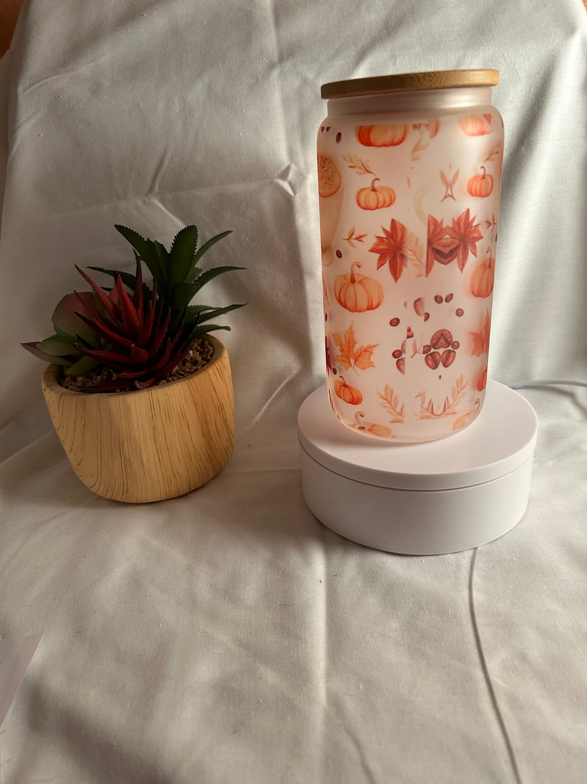 Fall Pumpkin Frosted Glass Cup- perfect to enjoy your cup of coffee or drink of your choice! ☕️