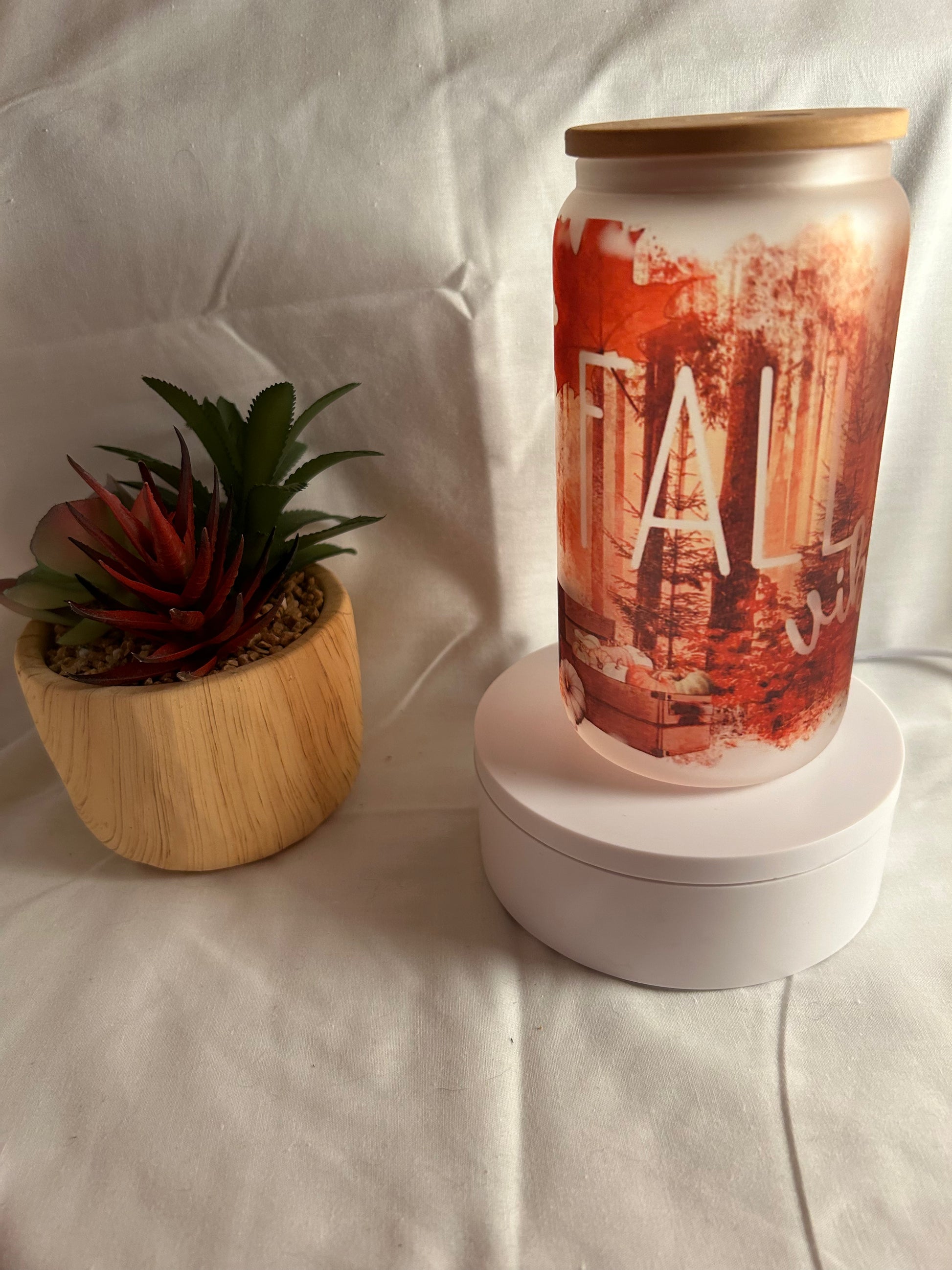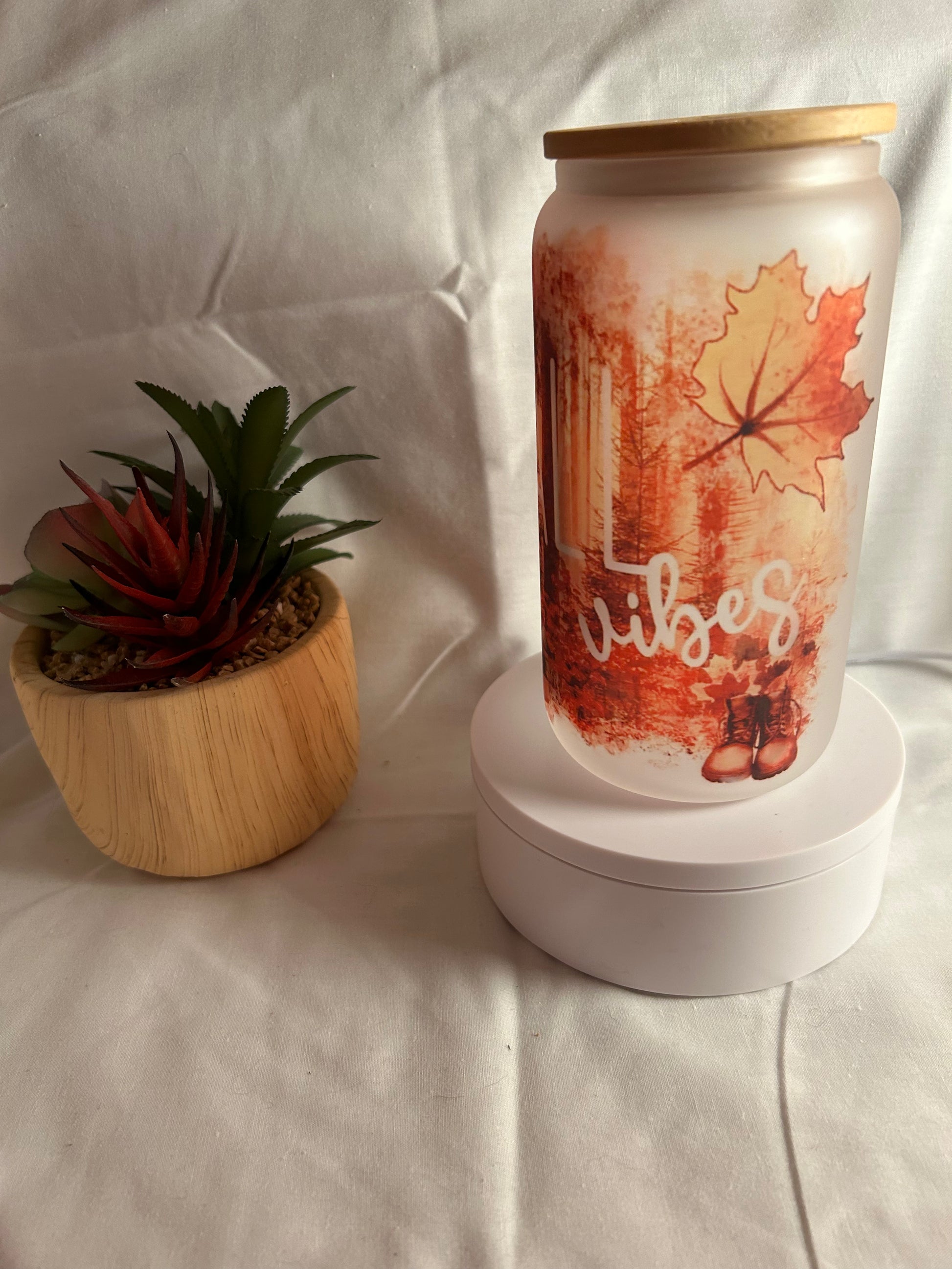 Fall Vibes Frosted Glass Cup- perfect to enjoy your cup of coffee or your drink of choice! ☕️