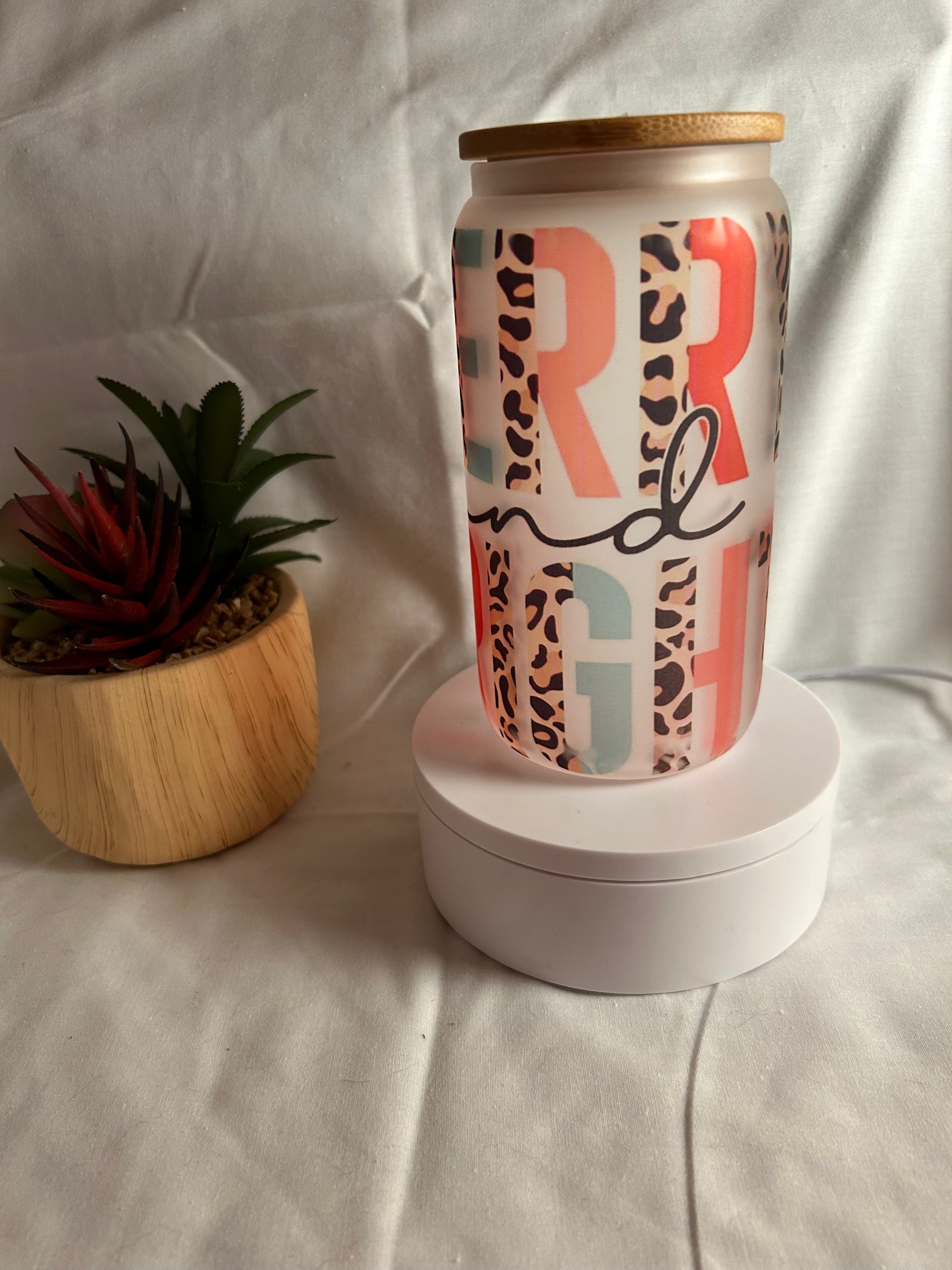 full wrap design on Libbey cup, bamboo lid and straw included!