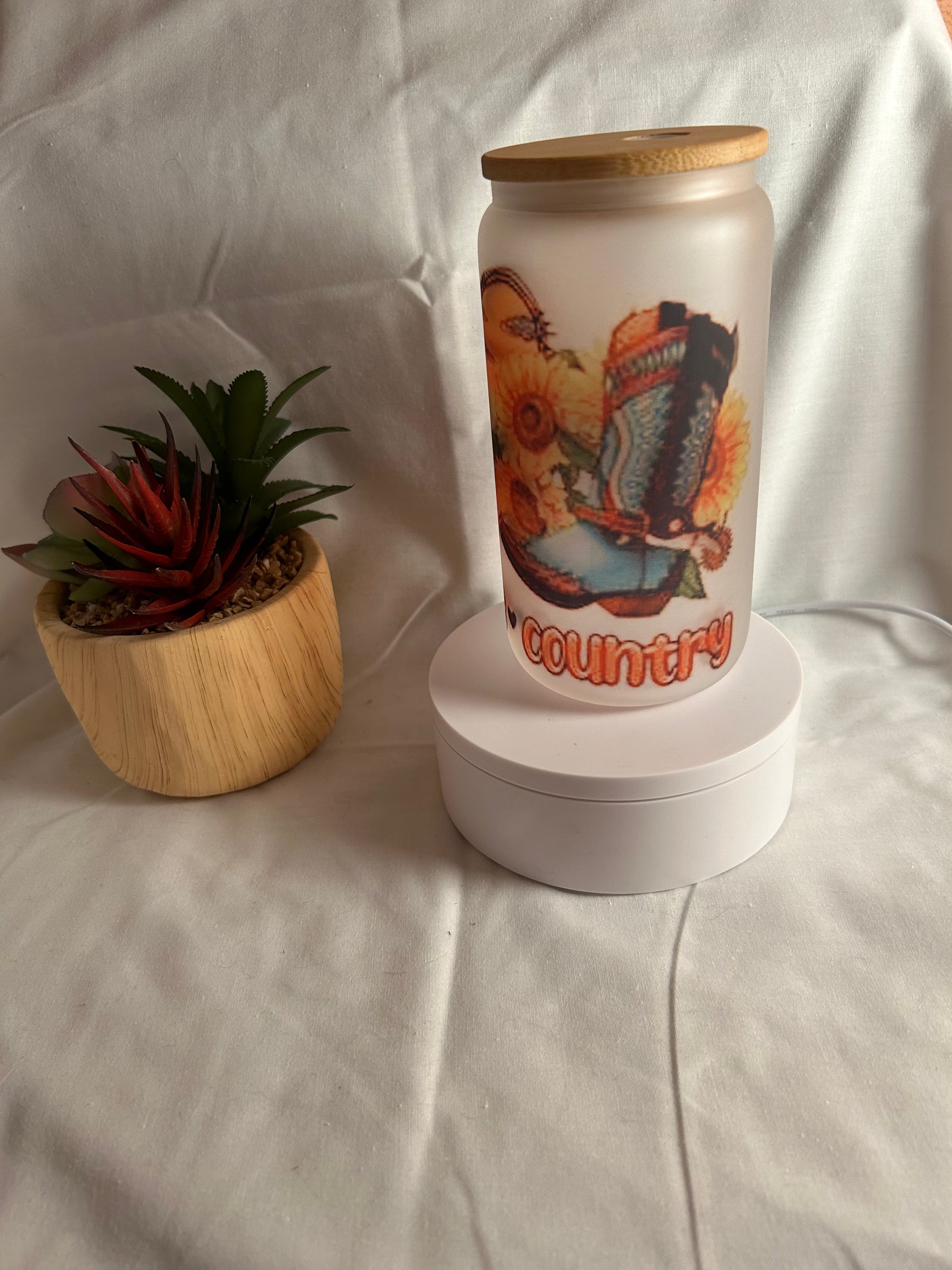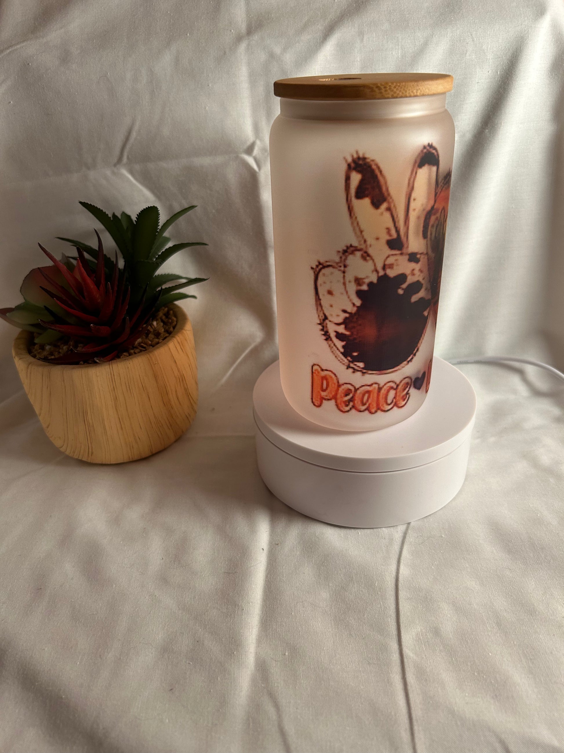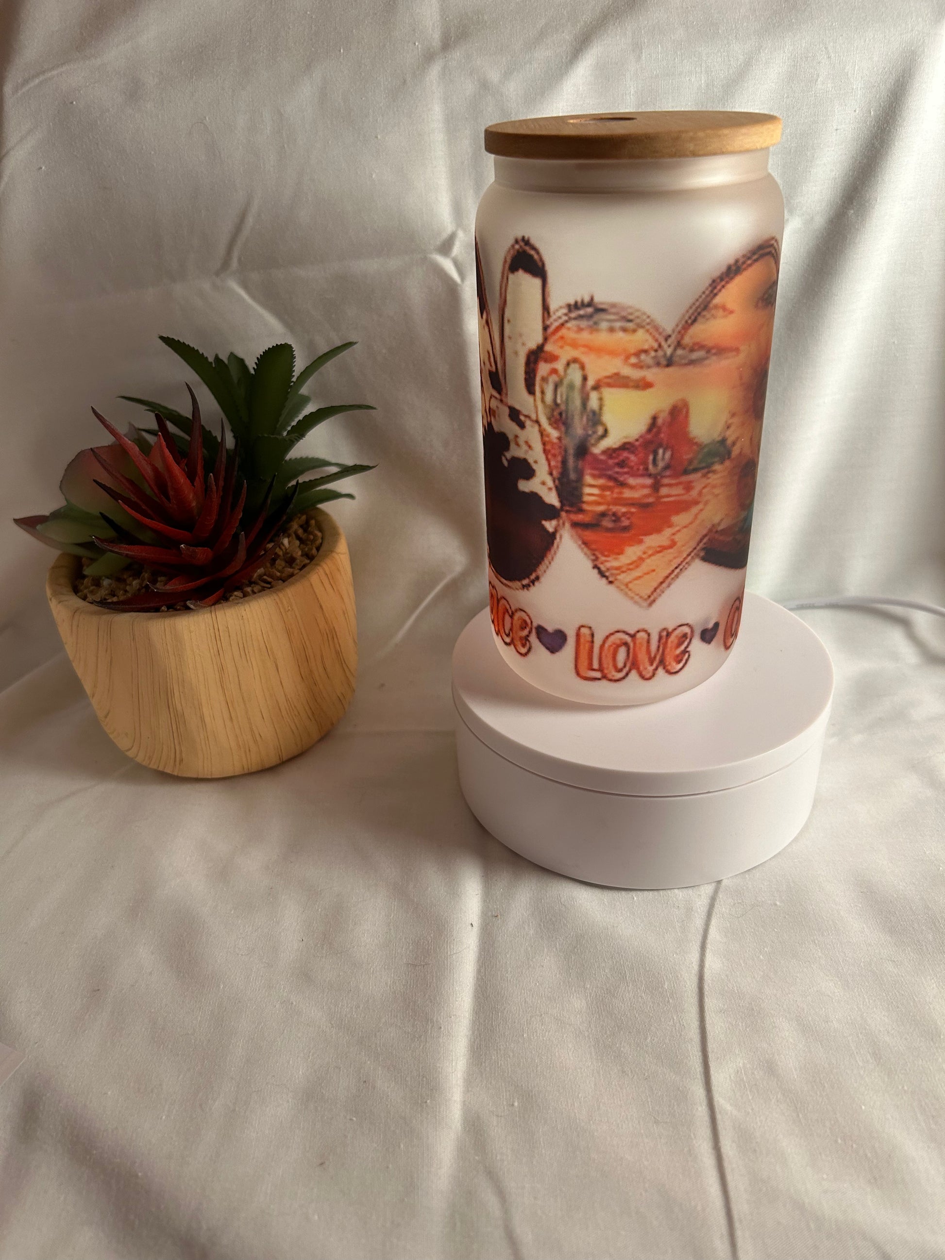Peace Love Country Frosted Glass Cup- perfect to enjoy your cup of coffee! ☕️