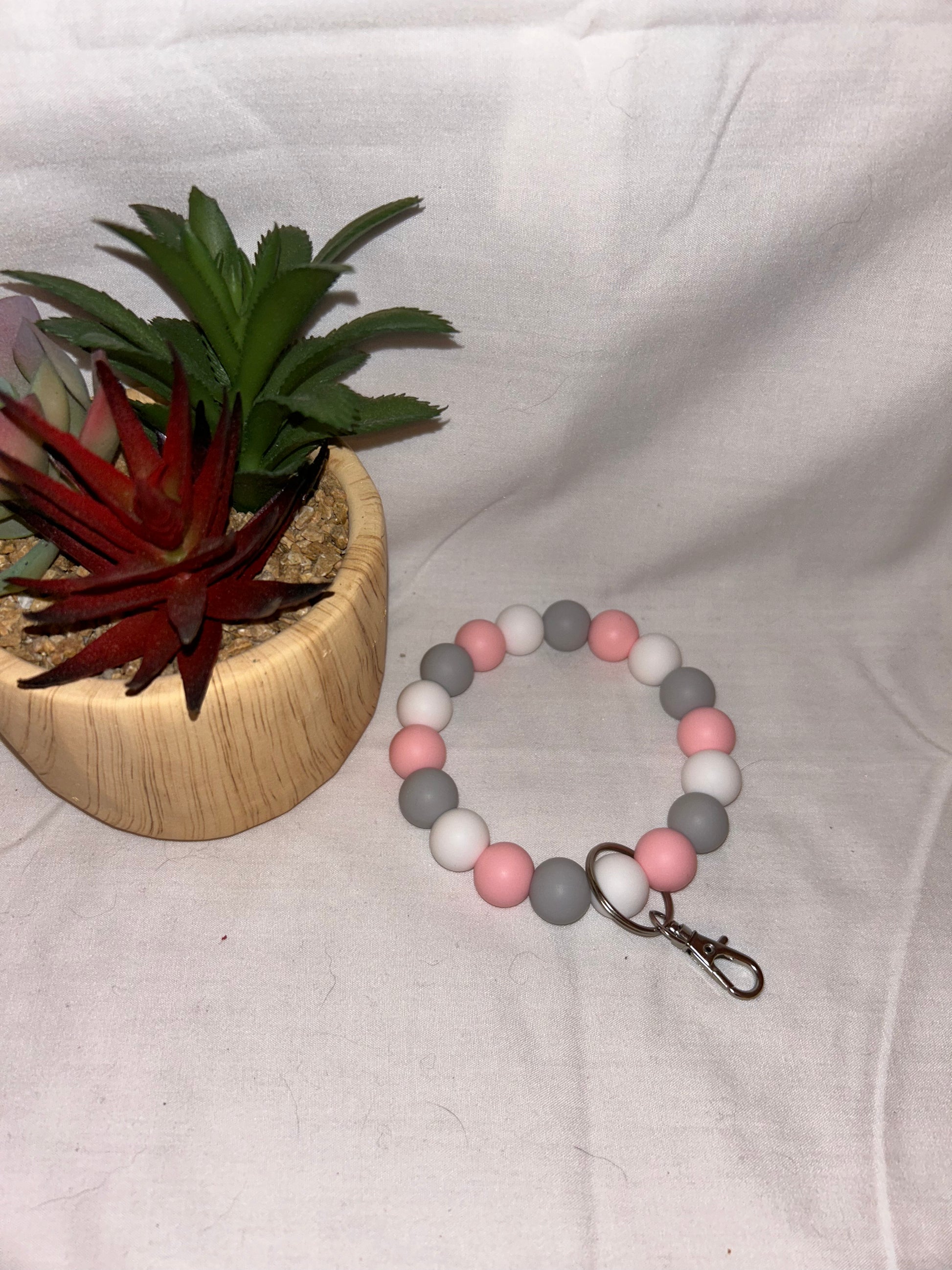 Silicone Bead wristlet with color combination of Light Pink, Light Grey and White!
