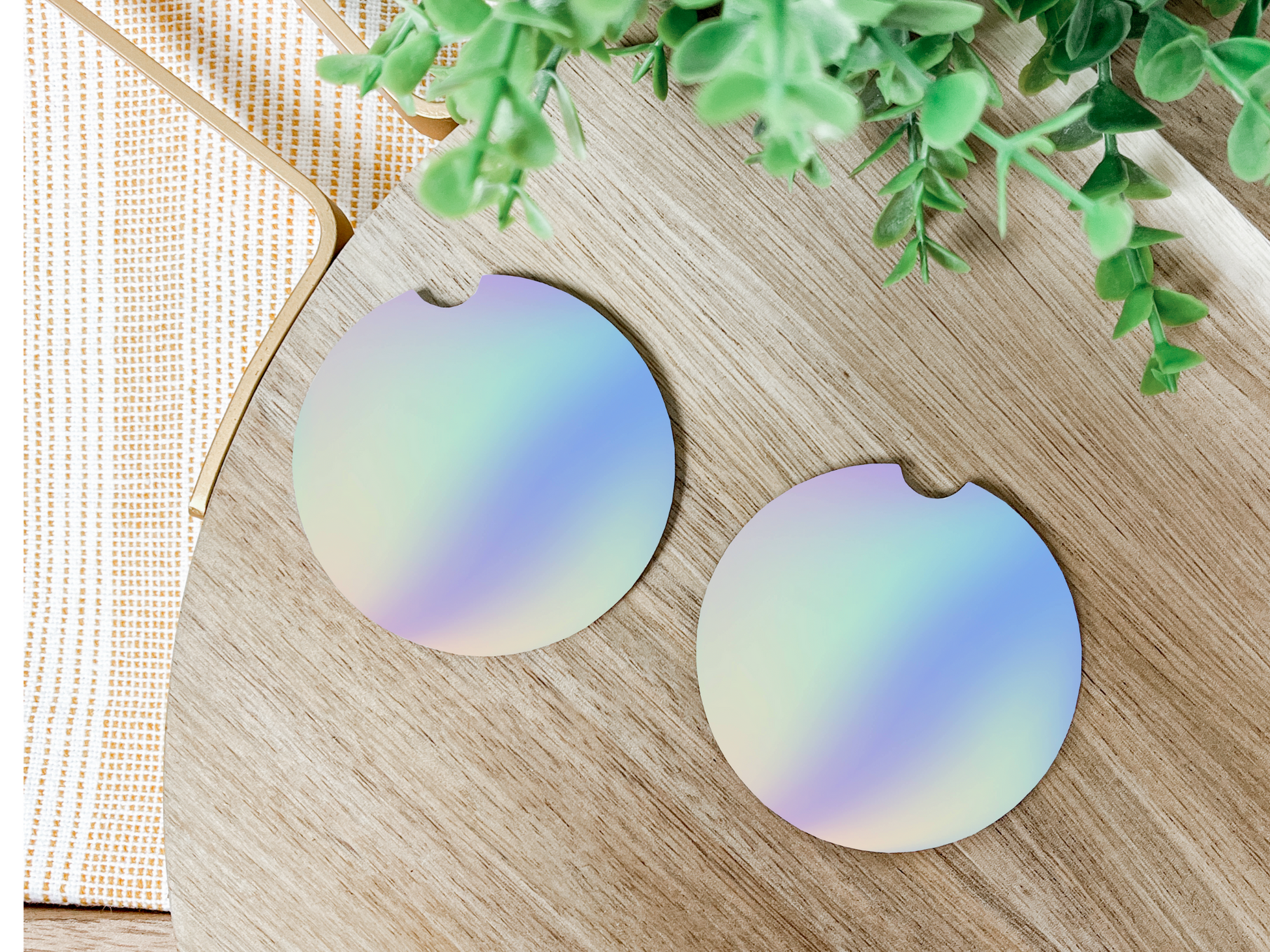 Included is a set of sublimation car coasters.